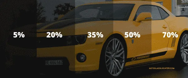 Each glass on the car has a regulation for the minimum amount of visible light that needs to enter the car. By law, the windshield is required to allow at least 70% light transmission. The front door windows are supposed to have a minimum of 35% which means you should really stay between 35% and 70% to be within the law. For safety purposes, it is recommended that you choose something in this range anyway.